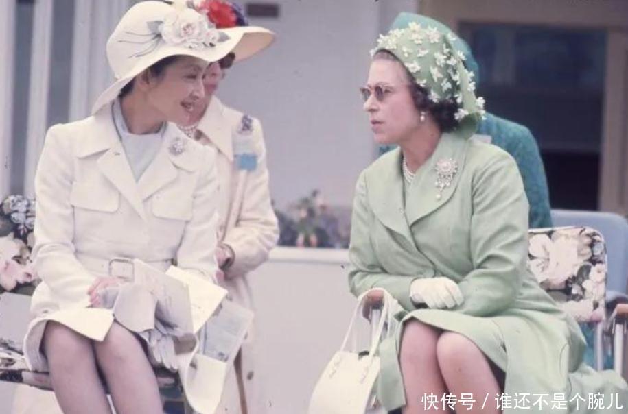 美智子和伊丽莎白二世坐在一起聊天,气质丝毫不输给伊丽莎白二世。