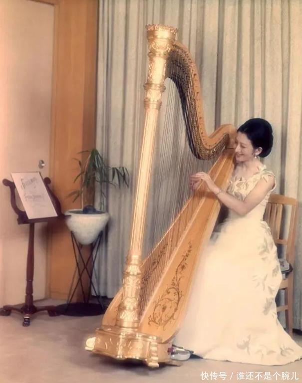 在皇宫里演奏竖琴,她穿着白色刺绣礼服,宛如童话里走出来的精灵。